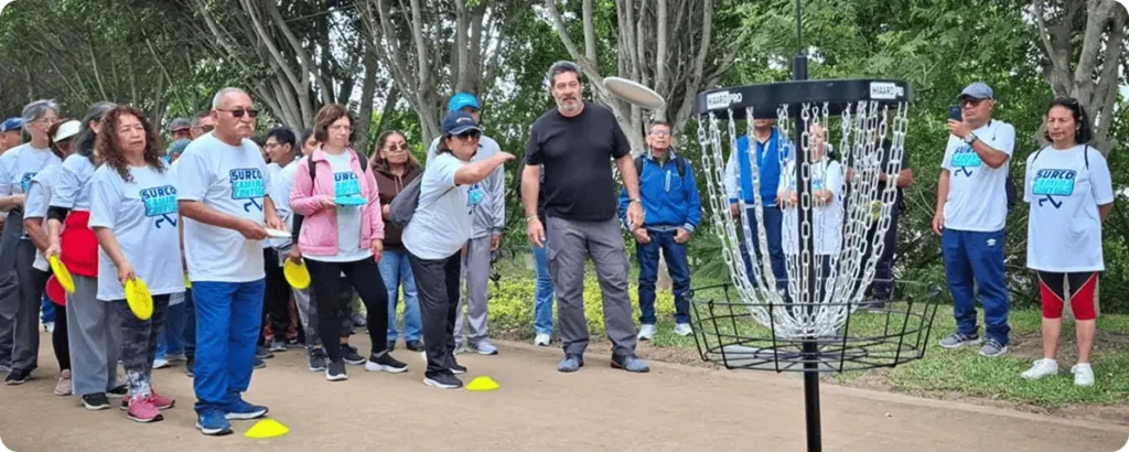 El disc golf es un deporte verdaderamente inclusivo: pueden practicarlo niños, adultos, adultos mayores y personas en silla de ruedas, reafirmando así nuestro compromiso con la inclusión y el desarrollo comunitario